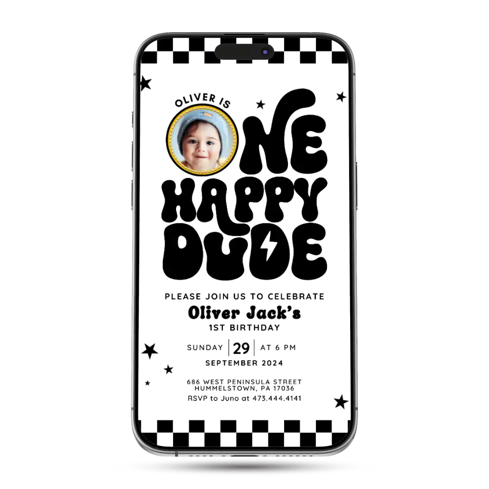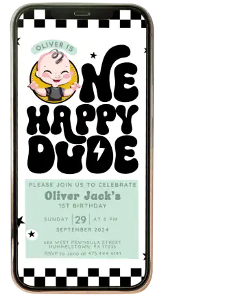 Celebrate your little dude's birthday in style with our One Happy Dude Birthday Invitation template! Designed to capture the spirit of joy and excitement, this customizable template is perfect for spreading smiles and creating memories with loved ones.
