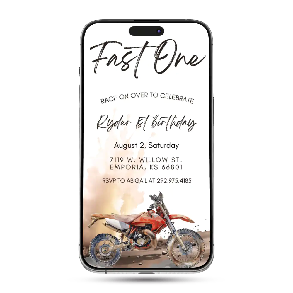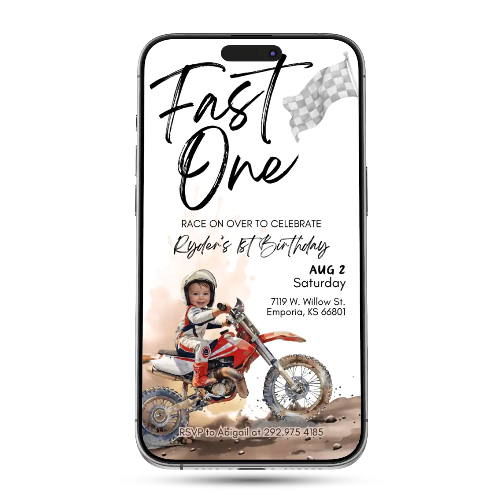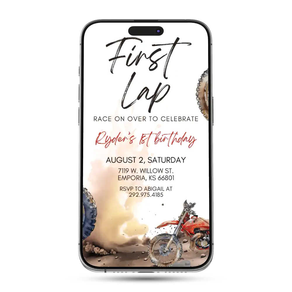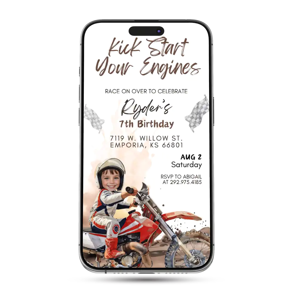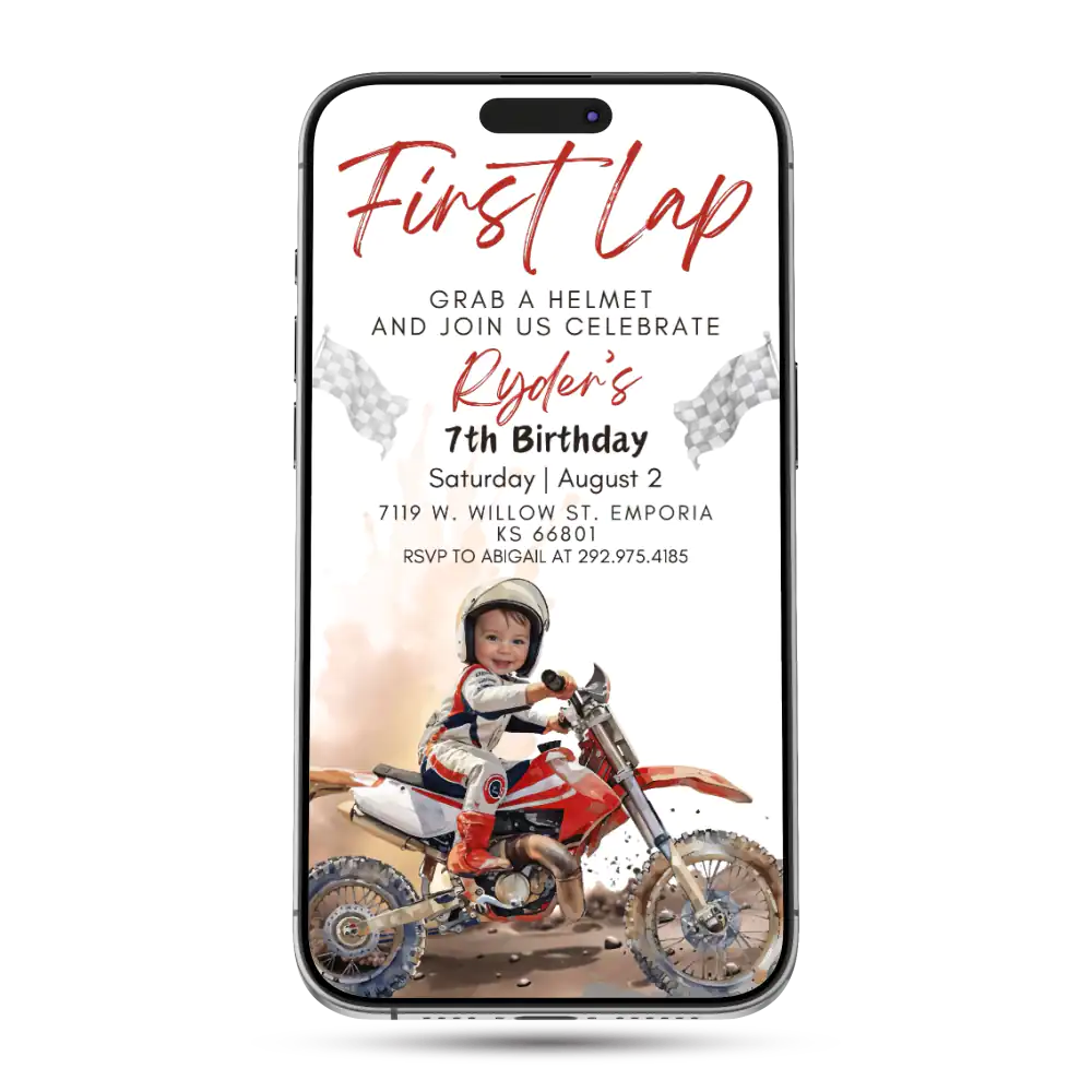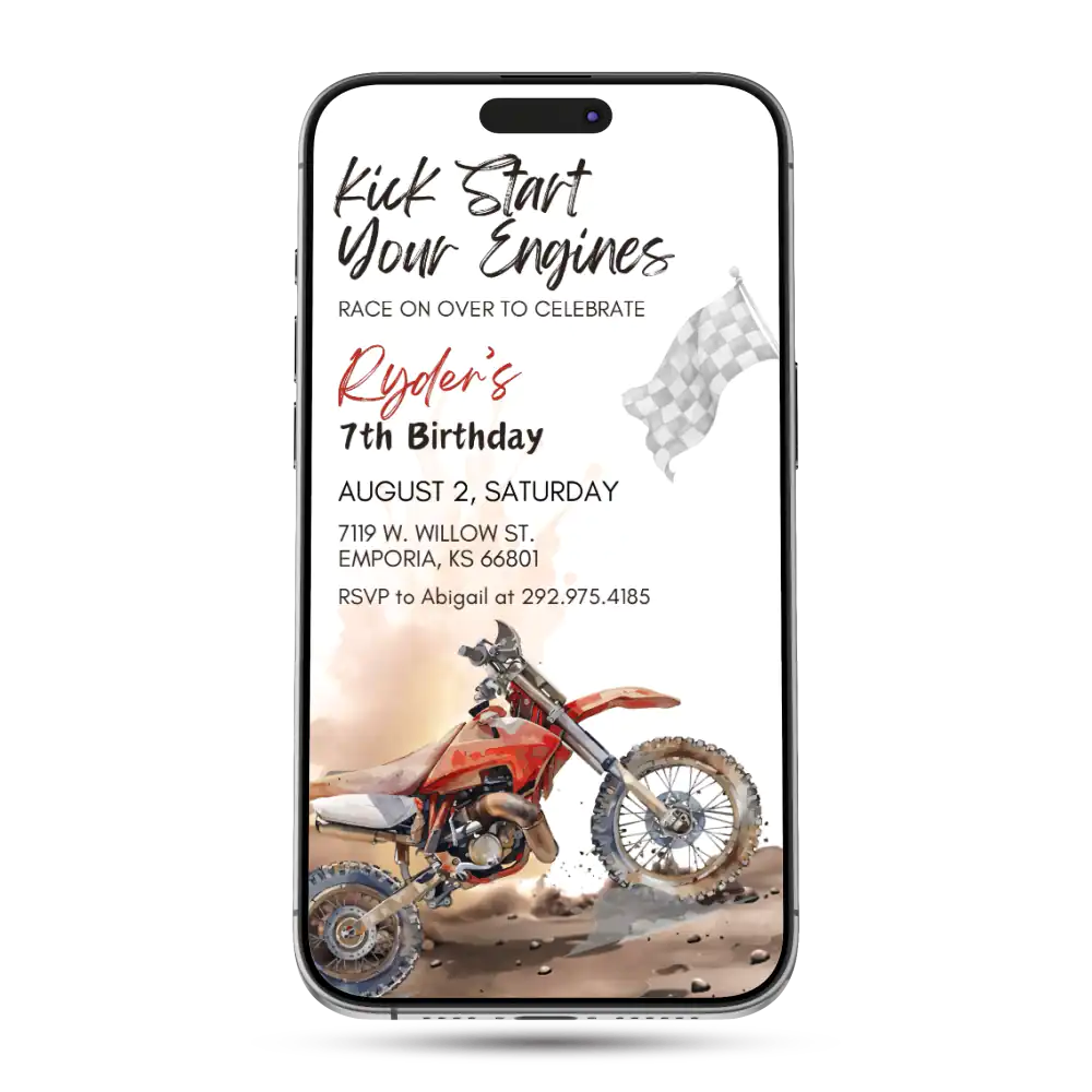 Race into party mode with this fun and bold Dirt Bike Invitation! Perfectly tailored to a motocross theme, it brings high-octane vibes to your little one's big day. A great way to showcase your adventurous spirit!